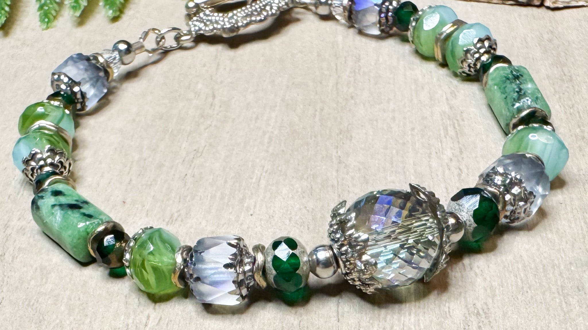Azurite Malachite Czech Bracelet, 7 1/2 inches