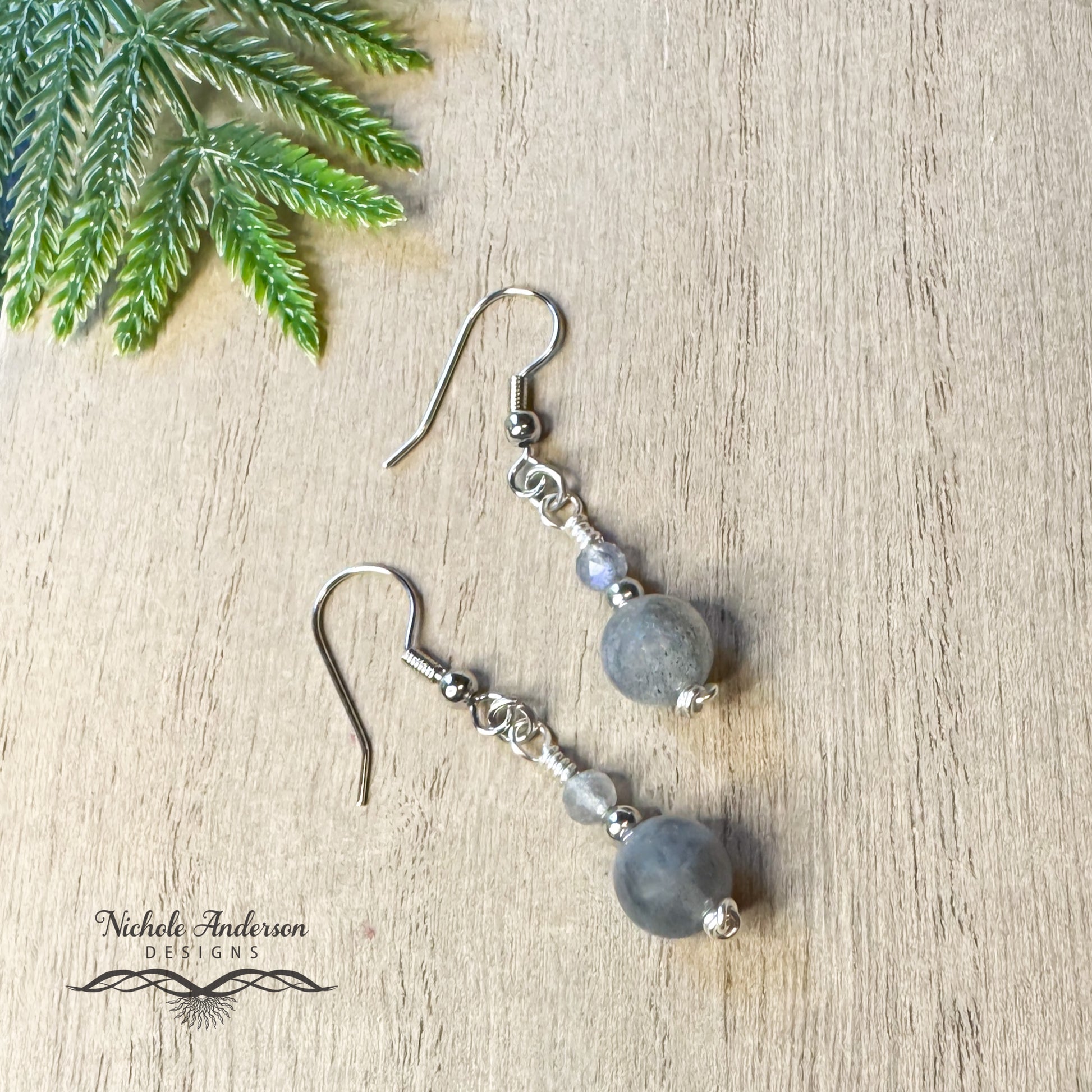 Laboradorite Crescent Moon Necklace and Earring Set, 22 inches length, 1 1/2 Crescent Focal